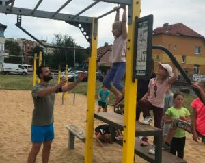 Děti čeká atletický víceboj, slackline, sport. hry a koupání v Barrandovském aquaparku.